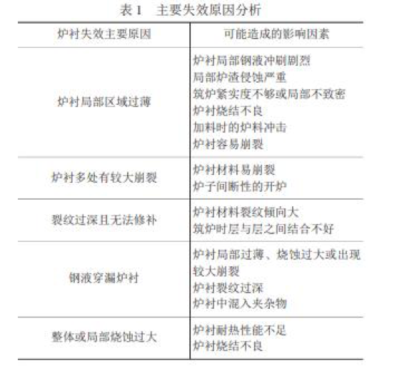 中頻爐爐襯裂紋傾向大和不耐鋼液沖刷是中頻爐失效的主要原因,選擇比較容易燒結、裂紋和崩裂傾向 小、耐鋼液沖刷等特點的中頻爐爐襯材料,采用適當?shù)臓t襯修筑和維護工藝,能使中頻爐爐齡從 45 爐次提高到 70 爐 次以上。