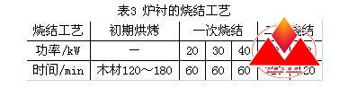 在熔化鐵水的過程中,爐襯要承受1550℃左右的高溫,要求爐襯在高溫下不熔化開裂,同時(shí)要抵抗高溫鐵水的沖刷和腐蝕。因此,除了合理選擇石英砂的粒度配比、硼酸的加入量和爐襯的搗固方法外,還要適當(dāng)?shù)剡x擇爐襯的燒結(jié)方法。在過去,采用的是連續(xù)送電烘烤工藝,洪爐時(shí)間達(dá)10h,消耗能源嚴(yán)重,生產(chǎn)效率低。